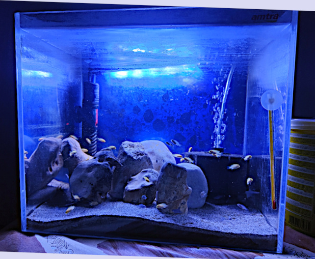 I piccoli pesci che vedi nuotare felici, sono i Ciclidi africani che amo riprodurre nella mia piccola serra.