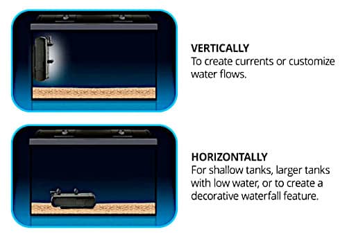 Ma non è l’unica chicca della serie U della Fluval; il filtro può essere posizionato anche orizzontalmente, offrendo comode soluzioni negli acquari non molto alti o nei rettilari, habitat di anfibi e tartarughe.